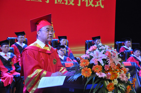 典礼在雄壮的国歌声中拉开序幕。校党委书记彭小奇致毕业贺辞,他代表学校党委、行政和全校师生员工向2017
