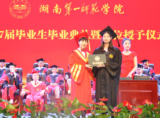仪式上,主持人宣读了学校学位评定委员会关于授予学士学位的决定、湖南省教育厅和学校的表彰决定,张莉梅等167名同学被评为2017届省级优秀本科毕业生,李忆璇等407名同学被评为2017届校级优秀本科毕业生。