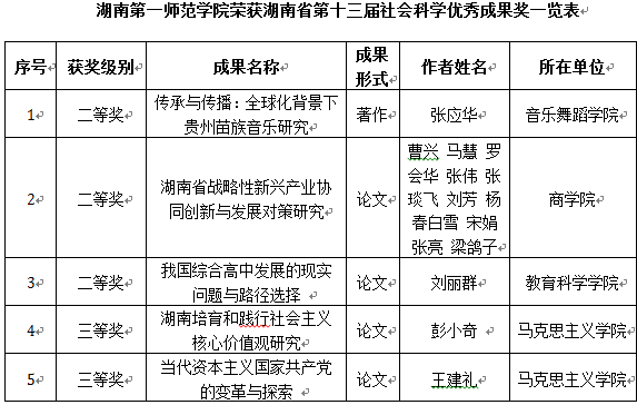 我校在湖南省第十三届社会科学优秀成果评选中喜获突破-87978797威尼斯