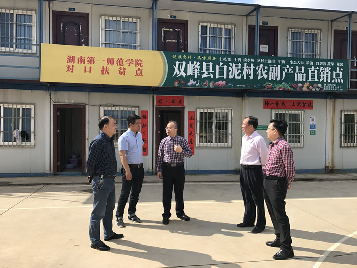 “这下好了,我们村里的农副产品不用再去找销路了,一师帮我们在学校设了一个直销点。”白泥村的村民都在相互传递这个好消息。54日上午,我校对口扶贫点——双峰县白泥村农副产品直销点正式营业,为该村农副产品销路提供了增加收入、壮大村级经济的新路子。校党委书记彭小奇、副书记刘志敏、副校长刘鸿翔以及扶贫工作队赵小群、鲁云生、组织统战部蒋莉等同志来到对口扶贫农副产品直销点指导工作。