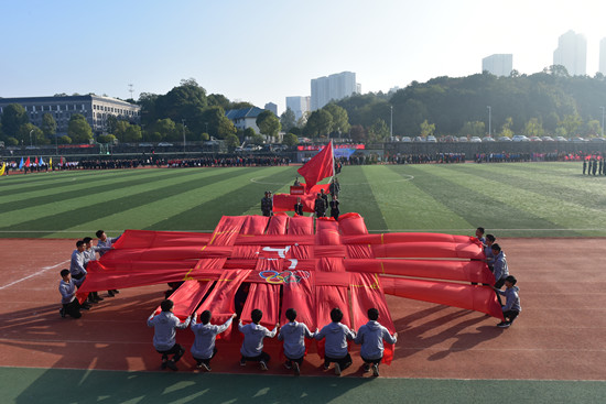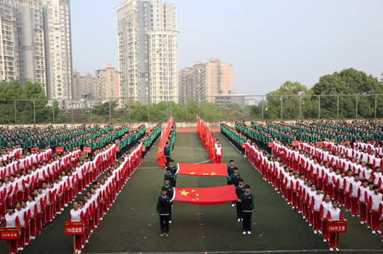 在庄重肃穆的升国旗、唱国歌仪式后,副校长刘鸿翔和校长童小娇分别在城南书院校区和东方红校区发表了激情澎湃的致辞。他们代表学校党委、行政部门对我校本次田径运动会的召开表示热烈祝贺,并简要回顾自建校以来我校体育运动事业的发展历史和骄人成绩,号召同学们继续弘扬顽强拼搏的体育精神,赛出佳绩、赛出风格,不断超越自己,在拼搏中实现梦想。