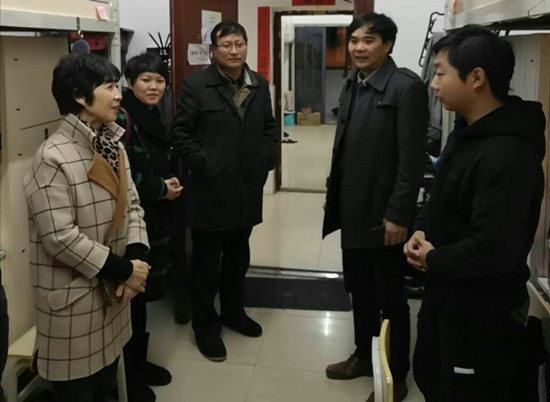 校长童小娇同辅导员一道走访学生宿舍