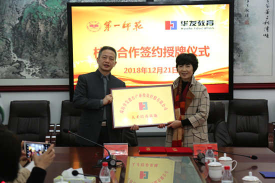 童小娇在讲话中指出,王韦华董事长是第一师范的知名校友,对母校有着深厚的感情,目前我校有部分学生在“华发教育”实习,“华发教育”对我校的实习生给予了精心的培养,双方的深入合作具有良好的基础,相信通过合作,一定能够实现双赢。
