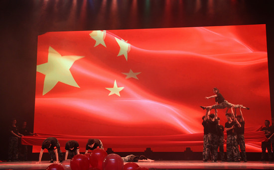舞蹈《练战》大气恢弘,以国旗为幕、红绸为阵、军歌为令,体现了信工男儿敢闯敢拼、家国天下的情怀。