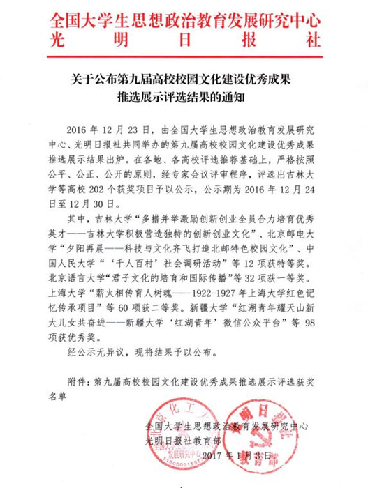 我校荣获全国第九届高校校园文化建设优秀成果特等奖