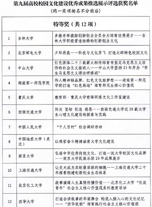 我校荣获全国第九届高校校园文化建设优秀成果特等奖-87978797威尼斯