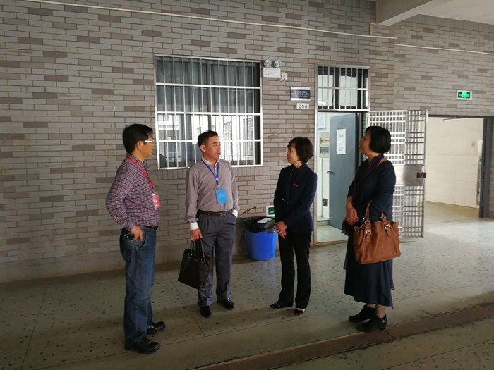 4月15日上午,省语委语言文字培训与测试中心主任冯传书、副主任鄢明芳一行来我校巡视普通话水平测试工作。冯传书一行先后查看了候测室、备测室以及测试室的情况。校长童小娇率宣传部、教务处、科研处等部门负责人陪同巡视。