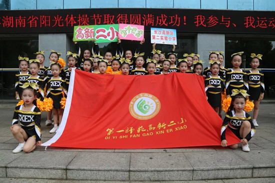 5月25日至5月26日,2019年全国青少年艺术节暨湖南省学生阳光体操节在湖南师范大学体育馆举行。本次比赛由中国关心下一代工作委员会健康体育发展中心青艺办主办,湖南师范大学、湖南腾胜众艺文化传播有限公司承办,来自全省的100多个学校队伍、5000余名青少年参赛。我校高新二小代表队一举拿下了本次比赛儿童甲组、儿童丙组自选花球啦啦操、儿童乙组中级技巧啦啦操以及儿童丙组校园大课间自选花球啦啦操4个项目的冠军。