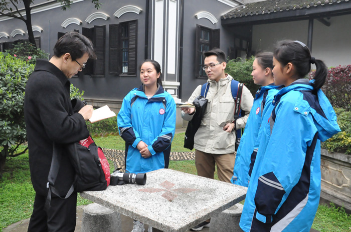 《人民中国》杂志社事业部总监崔建华一行4人组成的采访团参观了毛泽东与第一师范纪念馆和毛泽东当年就读的八班教室、洗冷水浴的水井、担任附小主事的办公室等,认真了解了毛主席在湖南一师求学和担任教员的经历,以及我校作为“千年学府,百年师范”的发展沿革培养出的名人。每到一处,记者们都被校园内美妙的景色所吸引,禁不住啧啧称赞。随后,记者还采访了几位城南书院的学生,了解学生们当时报考的初衷、学校里的学制和课程设置、毕业后的设想等。
