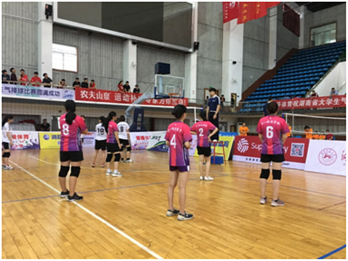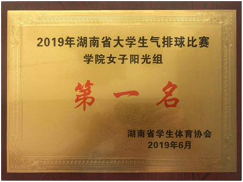 6月1至2日,由湖南省学生体育协会主办的2019湖南省大学生气排球比赛在湖南师范大学体育学院体育馆举行。来自全省各高校共51支不同组别队伍参加了此次比赛,我校女排在教练员梁斌、肖炼和陈卓3位老师的带领下,以5连胜的不败记录夺得学院女子阳光组冠军。