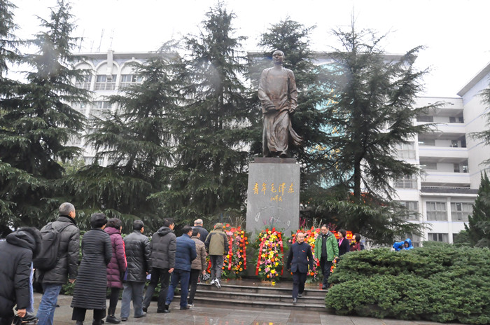 12月26日是我们中华人民共和国的缔造者、湖南一师杰出校友——毛泽东同志诞辰123周年纪念日。我校在城南书院校区“青年毛泽东”铜像前举行了简朴而庄严的纪念仪式。校领导彭小奇、童小娇、刘志敏、刘鸿翔、李克勤、刘宇、李昱、江正云、湖南财政经济学院党委书记肖湘愚、湖南女子学院校长杨兰英,副处以上干部、离退休老同志代表及师生代表400余人参加了活动。