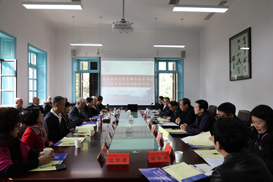 随后,在城南书院校区前楼会议室召开了座谈会。座谈会上,刘志敏代表学校对访问团一行来校表示热烈欢迎,详细介绍了我校的办学历史、发展现状,以及我校公费师范生培养情况,对乡村优秀小学教师培养的“一师模式”进行了详细解读。校工会常务副主席陆军就学校工会工作做了简要介绍。廖振兴表示,通过参观、交流深切领略了一师厚重的历史和独特的红色文化内涵,很受教育。他希望以后两岸能多开展互访和交流,进一步建立友好交流关系,为共同推动中华民族伟大复兴工程做出积极贡献。刘鸿翔在总结讲话中表示,两岸同属一个民族和国家,拥有共同的文化基础,这个文化基础很大程度就是我们中华民族的传统文化,两岸一家亲,两岸一家人,以此次交流活动为契机,进一步密切联系、常来常往,共同为两岸合作发展做出积极贡献。