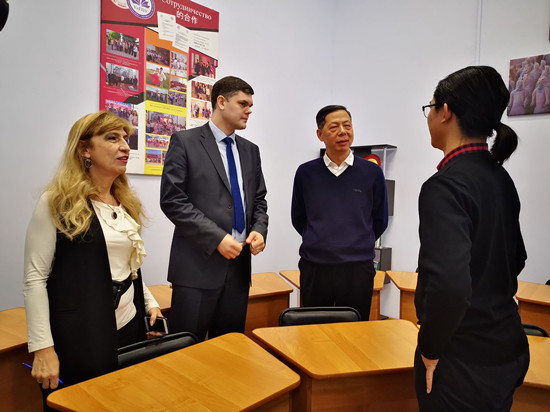 12月17日上午,代表团一行首先参观了乌里扬诺夫斯克国立师范大学的生物生态学和生物技术基础应用研究中心、校史馆等;随后与乌里扬诺夫斯克国立师范大学原校长塔玛拉·弗亚特金娜、副校长丹尼斯、乌里扬诺夫斯克市教育局局长别特列高娃·塔吉扬娜·尼古拉耶夫娜及相关人员举行了会谈。会谈内容集中在三个方面:一是2020年双方将继续推进学生交换、教师互派及学生夏令营等合作项目;二是双方对一些新的合作方式如两校之间的教师教育资质提升培训、互派著名教授授课、实行“1+2+1”或“2+2+1”等联合办学模式、推荐我校本科生到对方学校继续深造等项目的可行性进行研讨;三是双方对中国语言文化中心筹建相关事项进行协商。