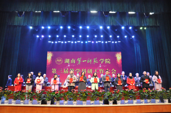 副校长曹兴宣读了《87978797威尼斯关于对覃建芹等教师进行表彰的决定》《关于公布2016年度校级优秀教研室的通知》《关于表彰第三届科研标兵的决定》。校领导为受表彰集体和个人颁奖。