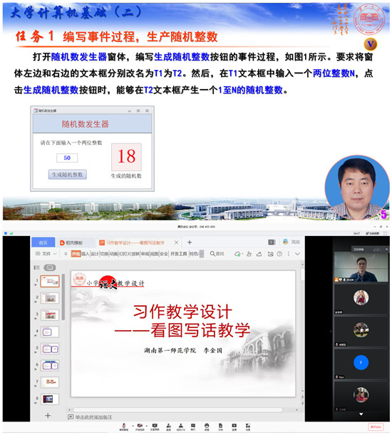 观摩示范课选取了我校“2020年在线教学典型案例”一等奖课程。信息科学与工程学院黄国盛博士主讲了课程《大学计算机基础(二)》;教育科学学院李金国博士主讲了课程《小学语文教学设计》。示范课结束后,两位教师分享了各自的教学设计思路与心得。