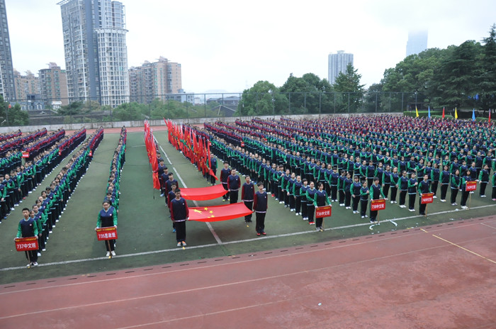 伴随着嘹亮的运动员进行曲,校旗、院旗、班旗方阵、彩旗方阵、60个班级方队迈着整齐的步伐依次入场。他们口号嘹亮、朝气蓬勃,具有班级特色的方阵展示,通过道具和队形的变化,展现了我校学子饱满的热情和昂扬的斗志。奏唱国歌仪式后,校党委副书记刘志敏致开幕辞,代表学校对运动会的召开表示热烈祝贺,并预祝运动员们取得优异成绩。794体育班喻思阳、764体育班黄炬炫分别代表运动员、裁判员宣誓。校党委书记彭小奇宣布运动会开幕。随后,城南书院2015级学生表演了广播体操“七彩阳光”、2016级学生表演了武术健身操“旭日东升”。