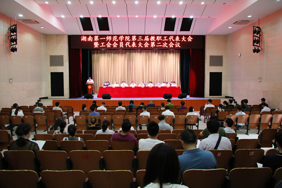 6月16日下午,学校第三届教职工代表大会暨工会会员代表大会第二次会议在东方红校区特立楼实验剧场隆重召开。校党政领导彭小奇、童小娇、刘志敏、刘鸿翔、李克勤、刘宇、曹兴、李昱、江正云、彭晓辉、赵小群出席了会议。108名正式代表、8名列席代表参加会议。