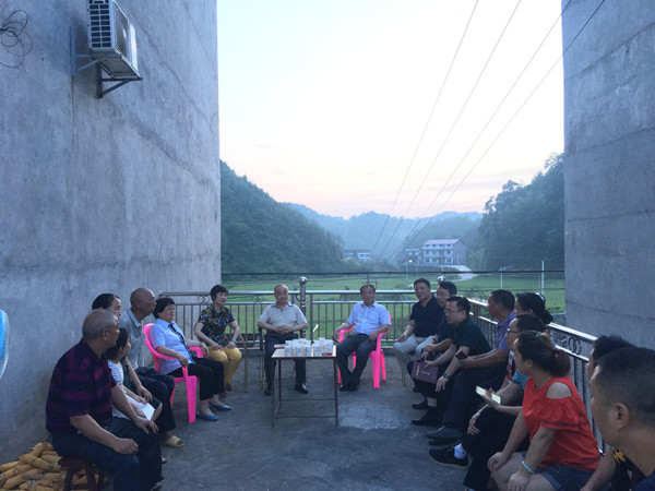 晚上,校党政领导一行在石牛乡党政领导陪同下与村民代表、党员代表、贫困户代表等在村民家屋场前讲政策、听建议、话家常、解难题、稳脱贫、谋振兴。聊起工作队,村民代表李和平喜笑颜开地讲到:村里来了省扶贫工作队以后,全村基础设施条件基本完善,发展的特色产业效益好,老百姓均能受益;规章制度越来越完善,村里的人居环境、群众精神面貌实现了根本性改变。贫困户代表刘攀也难掩喜悦之情,他说要感谢党的好政策,作为村里的年轻人能在家门口就业,还能传承中国传统木制品加工工艺,带动老百姓脱贫致富也是年轻人该有的责任担当。