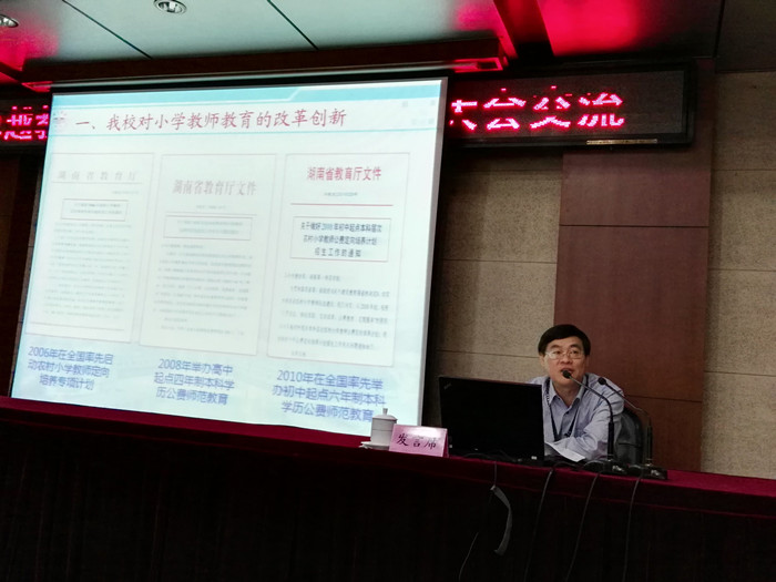 专题研讨活动中,江正云副校长受邀做了题为“创新师范教育培养模式 促进基础教育均衡发展”的典型发言,介绍了我校公费定向农村卓越小学教师培养工作取得的成果和经验。江副校长分析了当前农村小学教师存在的突出问题,总结了我校在师范教育基本制度、培养模式等方面的改革创新,并重点阐述了我校在严把生源质量关、注重专业情意养成教育、强化教育教学基本技能与综合素质培养、落实“三位一体”协调培养机制等方面的主要做法及经验,得到了教育部领导和与会专家的一致好评。