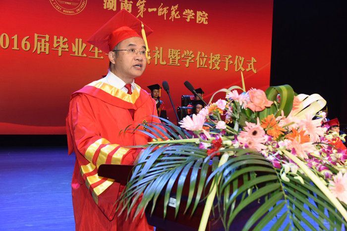 仪式上,主持人宣读了湖南省教育厅的表彰决定,郭卫明89名同学被评为2016届省级优秀本科毕业生,欧文倩等3名学生被评为省级自主创业优秀毕业生。