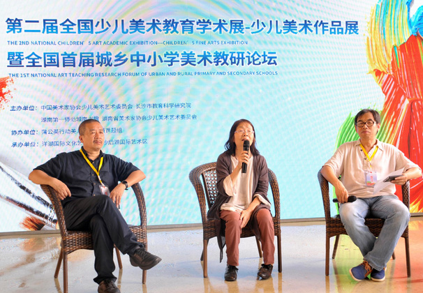 6 月1 日—2 日,中国美协少儿艺委会、湖南省美协少儿艺委会、长沙市教育科学研究院及我校城南书院联合主办的“全国首届城乡中小学美术教研论坛”在长沙后湖国际艺术区举行,配合论坛还举办了“城乡中小学美术作品展”及“第二届全国少儿美术教育学术展”,来自全国的近300幅令人耳目一新的画作受到家长和孩子们的热捧。美术与设计学院范迎春院长、城南书院院长张尚晏、城南书院美术教研室全体美术教师、美术与设计学院教师代表以及来自全国的四百余位优秀少儿美术教育工作者出席本次论坛。