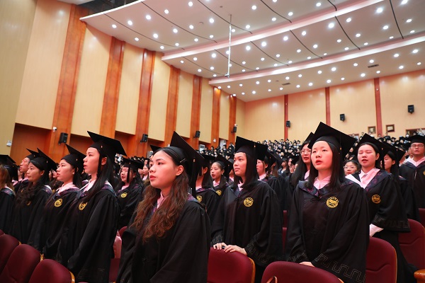 全体校领导依次为获得学士学位的毕业生代表授予学位证书,与学生握手,为其拔穗正冠。毕业生们向权杖郑重鞠躬,手捧证书,与校领导和主礼教授合影留念,在庄重的仪式中告别大学时光。