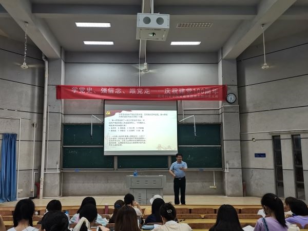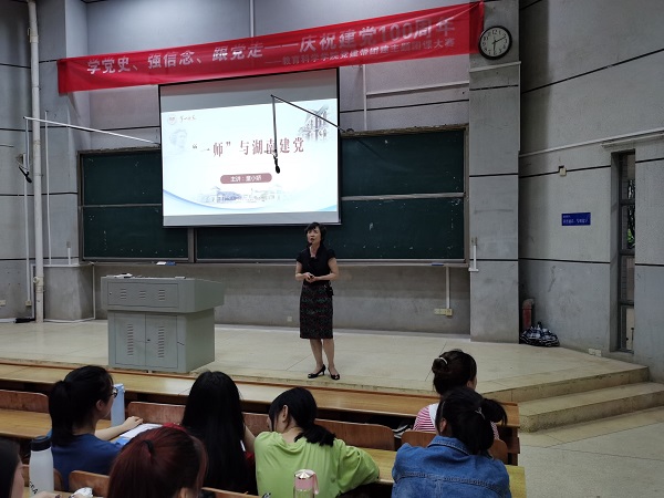 6月10日晚,校长童小娇分别为18级和19级部分学生专题讲授 “一师与湖南建党”。她从校史出发,围绕“一师与湖南建党”这一主题,全面梳理了一师学人在一师萌发共产党人初心的历史轨迹,指出一师为中国共产党的创建在思想上和组织上作出了重要贡献。她强调,绘就新蓝图、奋进新征程,要深入总结和学习运用中国共产党一百年的宝贵经验,坚定共产主义远大理想和中国特色社会主义道路,不忘初心、牢记使命,为党和人民的事业不懈奋斗。