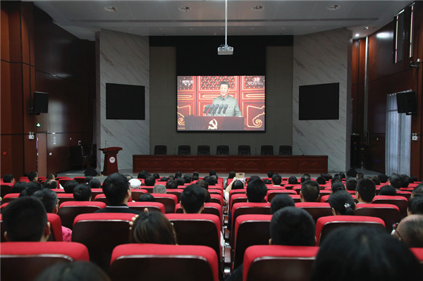 中共中央总书记、国家主席、中央军委主席习近平同志在大会上发表的重要讲话鼓舞人心,催人奋进!师生党员们纷纷表示,在实现“第二个百年”奋斗目标的征途上,一定牢记初心使命,坚定理想信念,践行党的宗旨,永远保持同人民群众的血肉联系,始终同人民想在一起、干在一起,风雨同舟、同甘共苦,为实现人民对美好生活的向往不懈努力,努力为党和人民争取更大光荣!