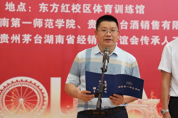 7月5号上午,我校2021年大学生暑期“三下乡”社会实践活动启动仪式暨贵州茅台湖南省经销商联谊会捐赠仪式在东方红校区体育训练馆内隆重举行。校领导罗成翼、童小娇、蒋蓉、赵小群以及贵州茅台酒销售有限公司、贵州茅台湖南省经销商联谊会相关领导出席了仪式。