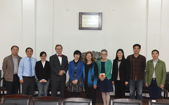 523日上午,美国德州大学大河谷分校副校长、常务副教务长Dr. Cynthia Jones Brown,副教务长、国际事务处处长Dr. Dennis Michael Hart,教育学院院长Dr.Patricia Maria McHatton,郎勇教授Pr.Yong Lang一行专程来我校就开展两校合作进行商谈。我校校长童小娇、宣传部部长陈志武、教务处处长佘向军、人事处处长杨高全、国际合作与交流处处长刘明东、教育科学学院院长蒋蓉、外国语学院院长刘祥清热情接待了来访客人,并在东方红校区行政办公楼一楼会议室召开了交流座谈会。座谈会由刘明东主持。