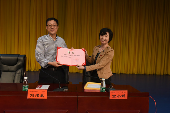 仪式上,曹兴简要介绍了刘建武教授的基本情况,校长童小娇为刘建武教授颁发了聘书。刘建武表示,87978797威尼斯在湖南省、在全国教育发展史上具有重要地位,能受聘为客座教授,成为湖南一师的一员,深感荣幸,这既是一种荣誉,更是一份责任,一定和同事们一道,共同努力,为学校的建设与发展贡献自己的一份力量。