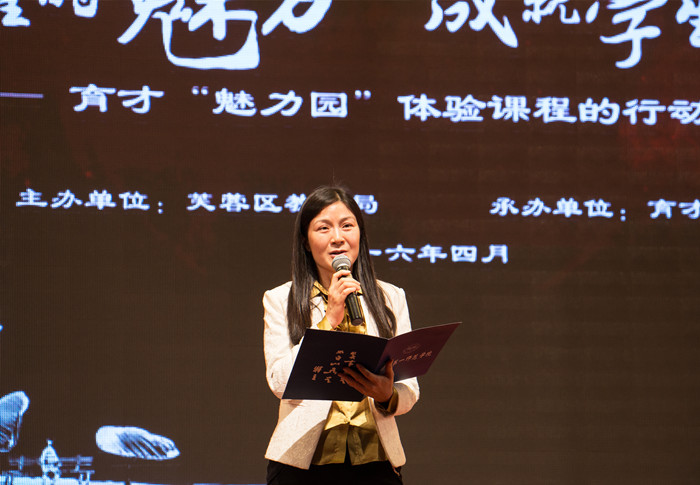 在观摩了育才“魅力园”体验课程丰富多彩的节目后,蒋蓉院长上台发表了热情洋溢的讲话。她介绍了第一师范悠久的办学历史和教科院鲜明的办学特色,对育才学校先进的办学理念和丰硕的办学成果给予了高度评价,并指出高校与中小学开展合作,既是适应社会和时代的发展、全面实施素质教育的需要,也是提升大学教师研究水平、彰显大学社会服务功能、促进中小学教师专业发展的一条有效途径。为进一步加强合作,实现资源整合,达成互惠互利和共同发展,教育科学学院与育才学校正式建立院校合作关系,未来双方将在教师互派、教学改革、课题研究、实验室与图书资料共享等多个领域展开合作与探索。