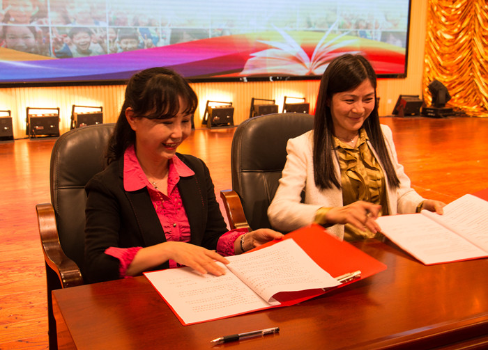 随后,蒋蓉院长与育才小学龙继红校长在协议上郑重签字。这份协议的签署,标志着双方在教学、科研、资源等领域的全面合作正式启动,为师范生技能培养、高校教师学术研究、小学教师教学科研创建了有利平台,是师范院校与地方小学对接的有效探索与实践,进一步彰显了我校为基础教育服务的办学宗旨。