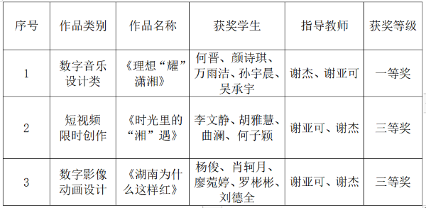近日,湖南省大学生数字媒体创意设计大赛获奖结果揭晓,我校文学与新闻传播学院学子在本次大赛中荣获一等奖1项,三等奖2项。