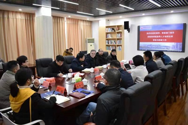 12月30日上午,校党委书记罗成翼,副校长曹兴、周发明一行深入商学院就人才培养方案改革及学科科研工作进行调研并召开座谈会。商学院领导班子成员、系主任与博士教授代表参加了座谈会,座谈会由曹兴主持。