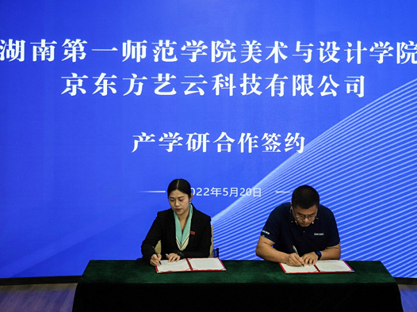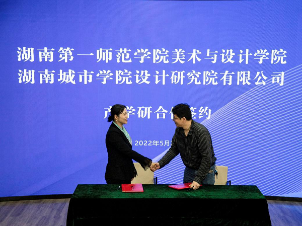 美术与设计学院分别与湖南城市学院设计研究院、与京东方艺云科技有限公司签署产学研合作协议。科研处、教务处负责人为两个研究中心专家颁发聘书。