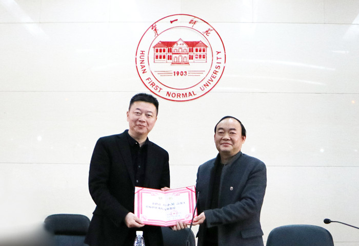会上,刘鸿翔高度评价了基地建设所取得的初步成效,感谢湖南随意居装饰集团有限公司对基地建设的大力支持,并代表学校授予彭小堃董事长为我校客座教授的证书。