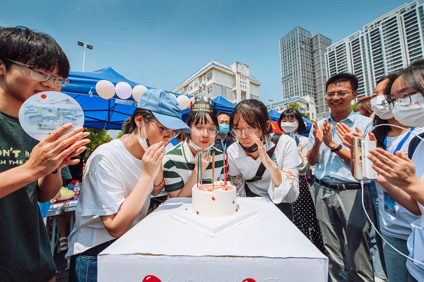 商学院的志愿者们开学时就提前制作了一师范的手绘地图,帮助新生在最短的时间内认识校园路径,还制作了各种各样的文创产品,比如在报到区分发自制饮料和手环等,并创意地开展生日祝福的活动,为生日的新生赠送生日蛋糕等。