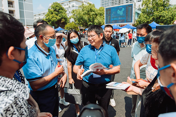 国基广场上更是人声鼎沸却又秩序井然,我校13个二级学院的迎新服务点集中设立在这里。今年我校新生报到手续实行“一站式”服务,新生凭录取通知书到学院报到点扫码即可完成报到。学校领导深入迎新一线指导工作,纷纷来到这里亲切慰问迎新工作人员,看望报到新生。9月3日,校党委书记罗成翼、校长童小娇等校领导先后来到国基广场的各学院迎新点,以及学生宿舍、活动区域、食堂、缴费处、军训服装和生活用品发放点等地方,实地查看迎新进展,指导迎新工作,每到一处都与迎新工作人员亲切交谈,仔细询问新生报到情况,并针对各学院的迎新工作提出建议。9月4日,在城南校区,罗成翼、童小娇先后走访了新生报到点、学生公寓等地,了解宿舍和食堂情况,看望新生、志愿者和相关工作人员,关切地和新生聊了起来,“家是哪里的啊?”“自己会铺床垫吗?”“欢迎来到一师”……一句句暖心的话语滋润着学生的心田。每到一处,罗成翼都强调,迎新工作一定要细致、周到、贴心,不能让任何一位学生失望。一定要把一师办好,让所有的孩子在这里都得到最好的成长。