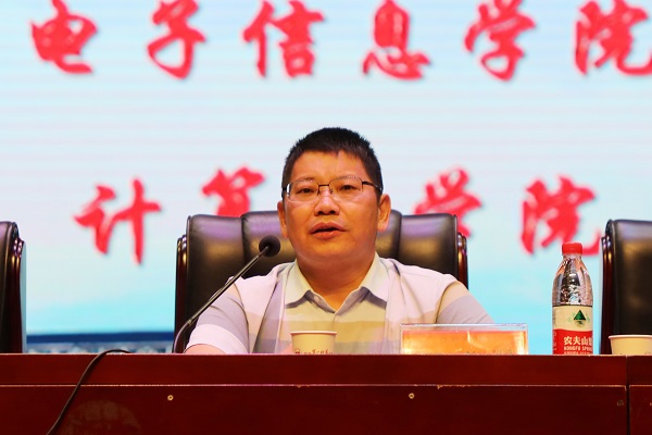 随后,电信院院长高峰、计算机学院院长满君丰分别从国家和省市发展战略、学科专业发展前景、人才培养、学科竞赛、实验实训、学习方法、考研深造、就业等方面对两个学院的新生开展入学教育。