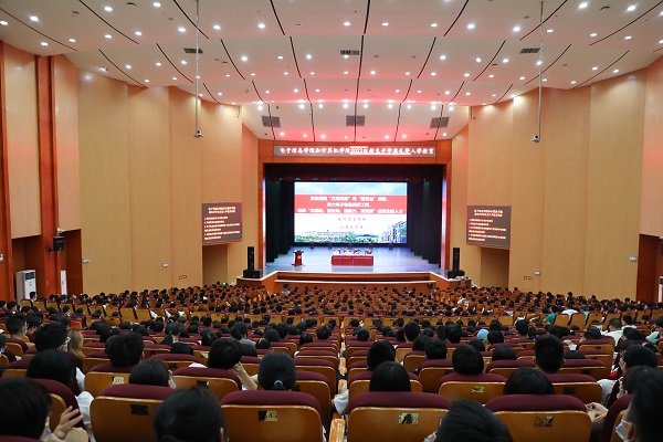 9月6日下午,电子信息学院/现代信息产业学院、计算机学院2022级新生入学教育第一课在东方红校区田汉剧院隆重举行,校党委书记罗成翼为两个学院的850名新生开讲入学第一课。党委行政办公室、宣传部、教务处相关部门负责人,电子信息学院和计算机学院全体教职工参加,入学教育由副校长周发明主持。