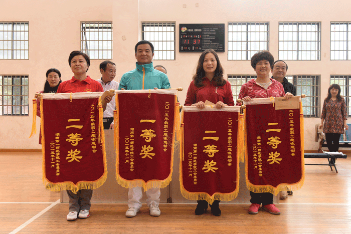 6日上午11:30,教职工趣味运动会完成全部比赛项目,举行了简单而庄重的闭幕式与颁奖典礼,校领导彭小奇、肖湘愚、刘鸿翔、刘志敏出席。校工会常务副主席陆军宣布了获得教职工趣味运动会单项获奖名单,校长肖湘愚宣布了集体获奖名单,并为获奖集体颁发了锦旗。