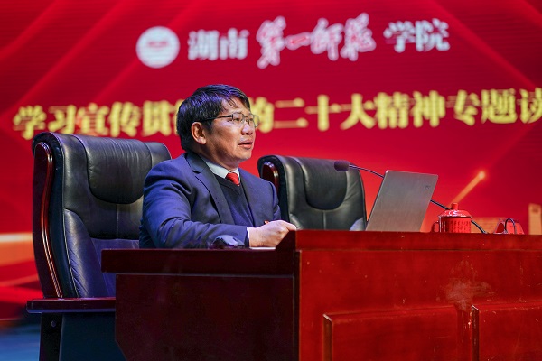 新学期在即,新征程开启。2月6日,我校学习宣传贯彻党的二十大精神专题读书班集体学习在东方红校区田汉剧场举行。党委书记罗成翼作辅导报告,党委副书记、校长胡穗主持报告会。全体在家校领导、全体教职员工参加学习。