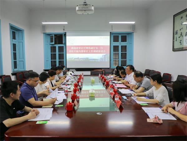 6月13日,省审计厅党组成员、副厅长周伟,中国内部审计协会副会长、省内部审计师协会会长王建军,以及省内部审计指导中心、湖南省内部审计师协会等有关同志一行8人,来我校开展内部审计工作调研。党委副书记、校长胡穗参加调研座谈会。