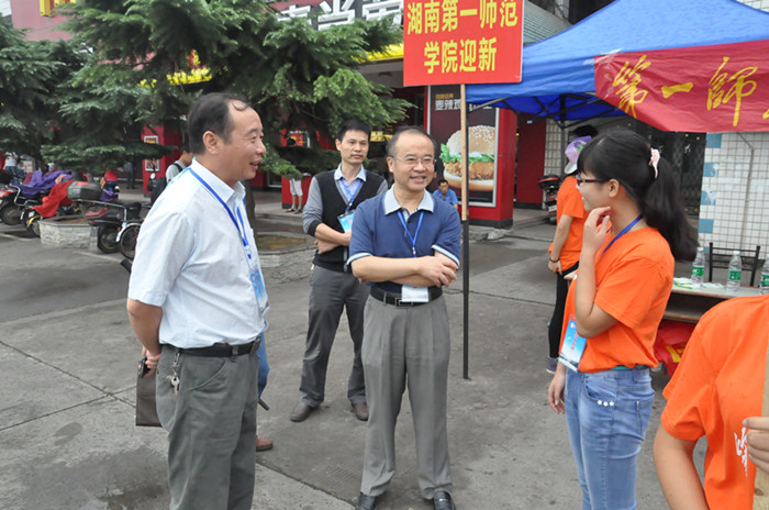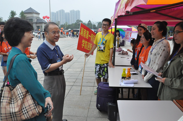 9月12、13日,是我校2015级新生开学报到的日子。长沙告别了酷暑,迎来了秋后的凉爽,我校2015年新招学生4111人正式报到开学。两天时间里,校领导彭小奇、刘鸿翔、刘志敏、李克勤、刘宇、童小娇深入校外迎新站点和校内各工作点,检查迎新工作,慰问迎新工作人员,为新生入学排忧解难。