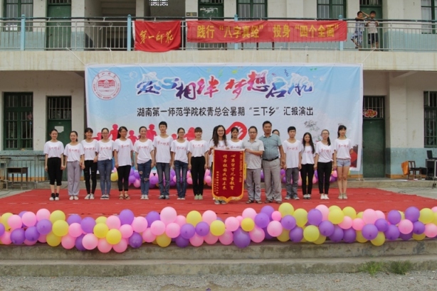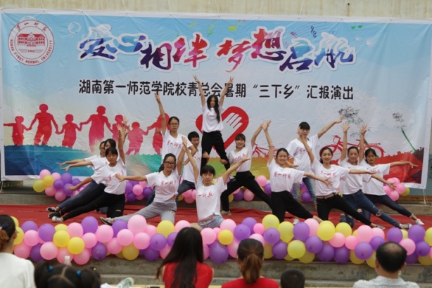 7月26日,阴天,太阳不大、气温不高,这对于志愿者们和孩子们来说是难得的好天气,孩子们和家长们都坐在操场上等待着。早上九点,“爱心陪伴,梦想启航——87978797威尼斯校青总会文艺汇报演出”便在新寨小学拉开了帷幕。精彩的侗族歌舞《多嘎多耶》体现出侗乡独特的人情美,孩子们一遍打着武术操一边喊着三字经,将传统文化之美带到大家的眼前,优美动听的英语歌曲表演给人耳目一新的感觉,孩子们做着手语唱着感恩的心令人感动,话剧《我们在一起》更是重现了三下乡中的众多温情画面,“当你和我变成我们,我们之间就有了爱与联系,这个暑假,我们在一起!”当舞台上传来这句话,响起第一师范校青年志愿者总会的原创歌曲“我们”的时候,现场众多孩子与家长落下泪来。