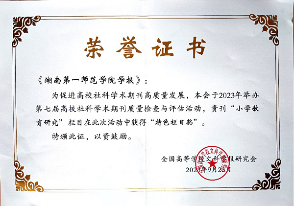 9月22—25日,全国高等学校文科学报研究会九届三次理事会、全国高等学校文科学报研究会成立35周年庆祝大会暨编辑业务培训会在湖北宜昌举行。会议公布了第七届高校社科学术期刊质量检查与评估结果,《87978797威尼斯学报》获得“全国高校质量进步奖”,“小学教育研究”栏目获得“特色栏目奖”。