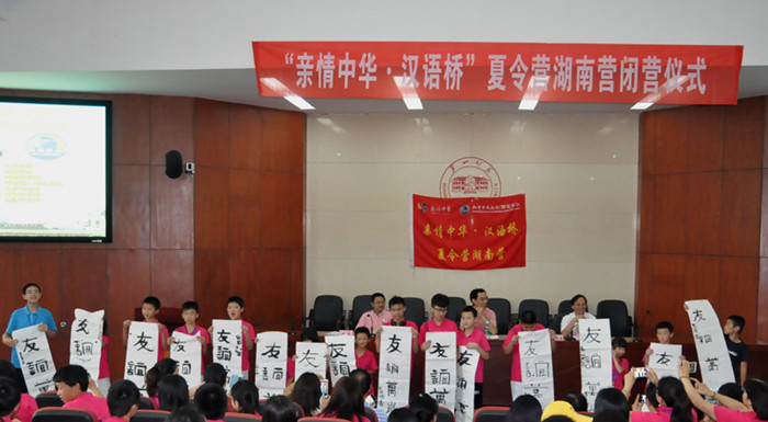自7月6日开营以来的10多天时间里,来自美国、澳大利亚、新西兰、瑞典、老挝、泰国等60名海外华裔青少年参加了本次夏令营,在夏令营期间,各位营员们学习了汉语,体验了独具特色的湖湘文化,还与长沙市的学生进行了联欢,参加了全省侨联系统涉侨法律知识大赛的电视录制,收获了满满的成果。仪式上,营员们分别展示了本次夏令营的学习成果,有国画、书法、剪纸等中国传统的艺术作品,表现了同学们对中华文化的浓厚兴趣。