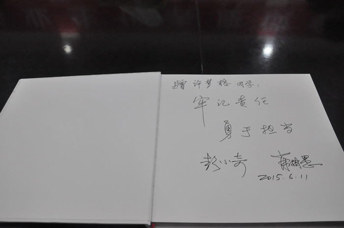 会上,手里拿着书记校长亲笔题词“牢记责任,勇于担当”的一师纪念册,即将要离开母校的许梦榕感慨万千:“感谢一师给我一个全新的环境,让我变得更加成熟稳重;感谢一师彻底地改变了我的人生,实现了我‘ 要让所有人认识我’的梦想;感谢一师把我塑造成为一个让我有能力为社会做贡献的人,我为我是一名一师学子而自豪!......大学,我来对了地方!”她同时提出学校要与支教地点建立长期性的合作、加强国际交流,提供留学服务等中肯的意见和建议。