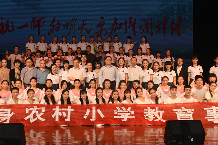 湖南省教育厅厅长王柯敏、教师工作与师范教育处处长张大伟,校党委书记彭小奇、校长肖湘愚、副校长刘志敏、童小娇来到晚会现场,和1000余名师生一起观看了演出。